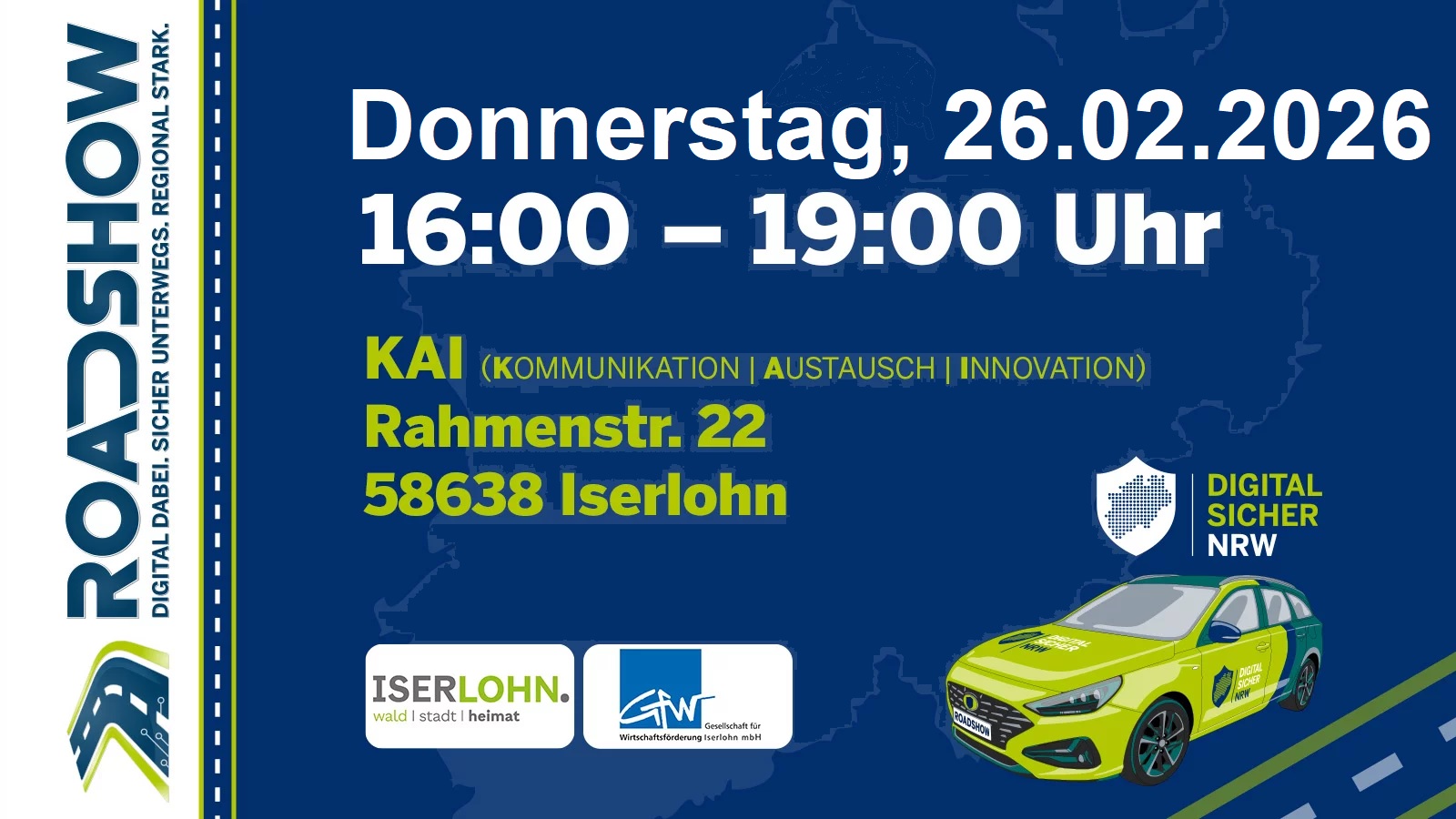 Die Agenda und die kostenfreie Anmeldemöglichkeit finden Sie hier: www.roadshow.nrw/Iserlohn